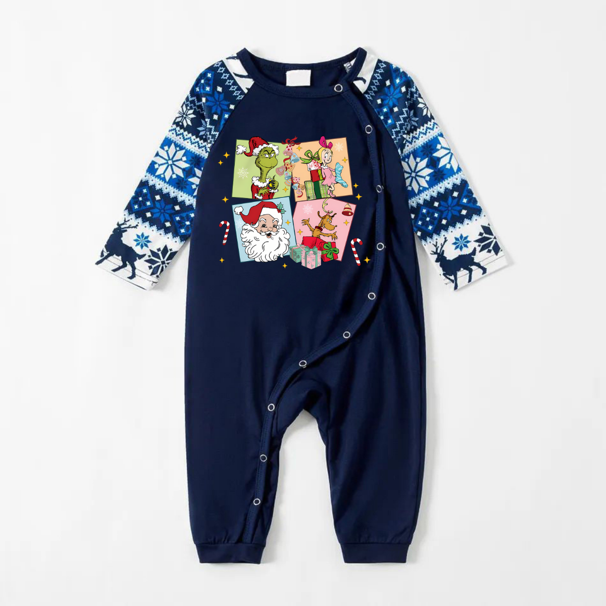 Joyful Blue Christmas Pajamas Set With Christmas Cartoon Pattern Print