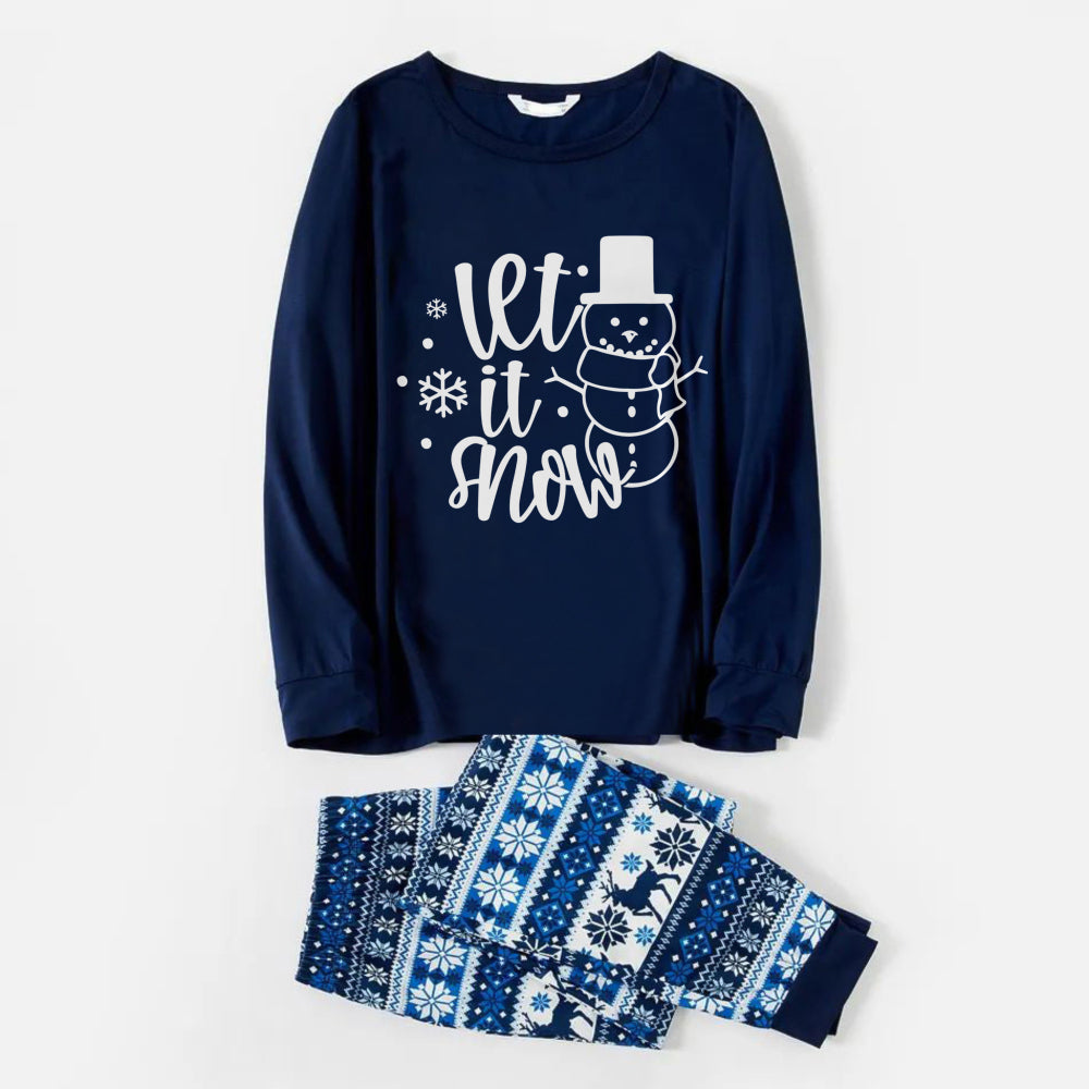 Joyful Blue Christmas Pajamas Set with Snowman and Slogan Designs