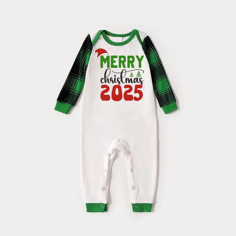 Merry Christmas 2025 Print Long Sleeve Top With Green & Black Plaid Christmas Matching Pajamas