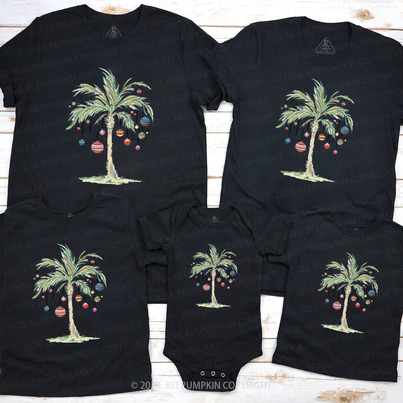 Palm Tree Holiday Tropical Christmas Family Matching T-Shirts