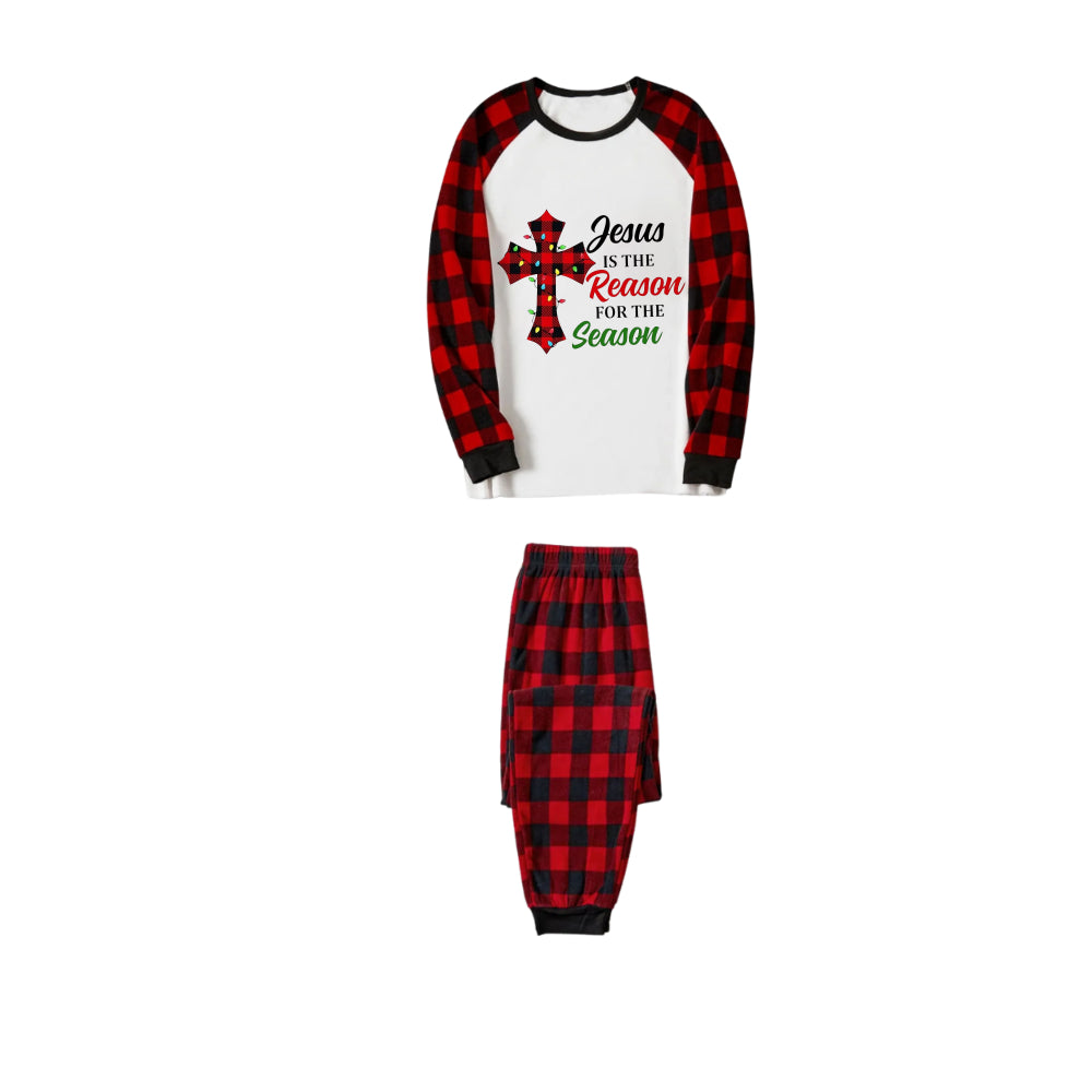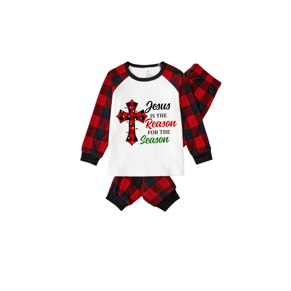 Red and Black Plaid Christmas Pajamas Set With "Jesus Is The Reason For The Season" Slogan Print
