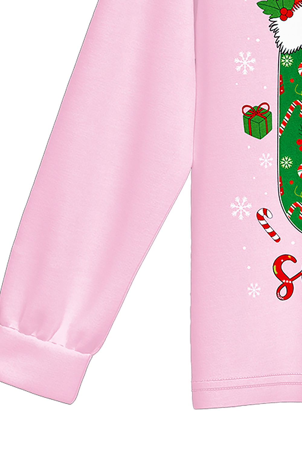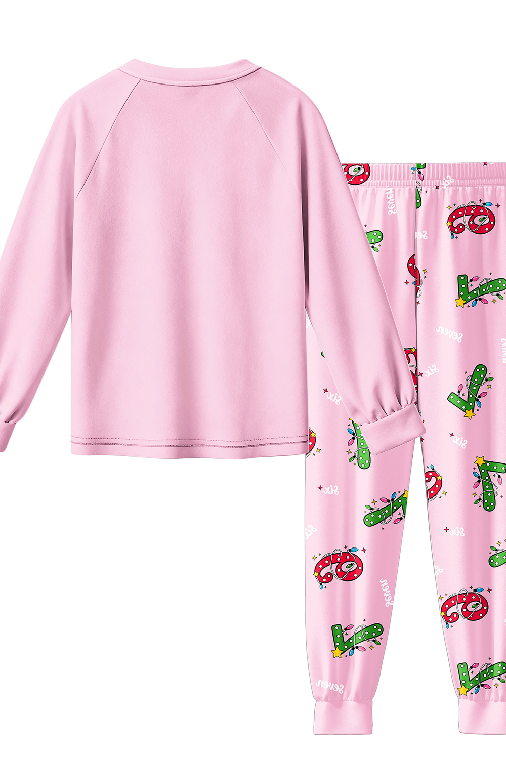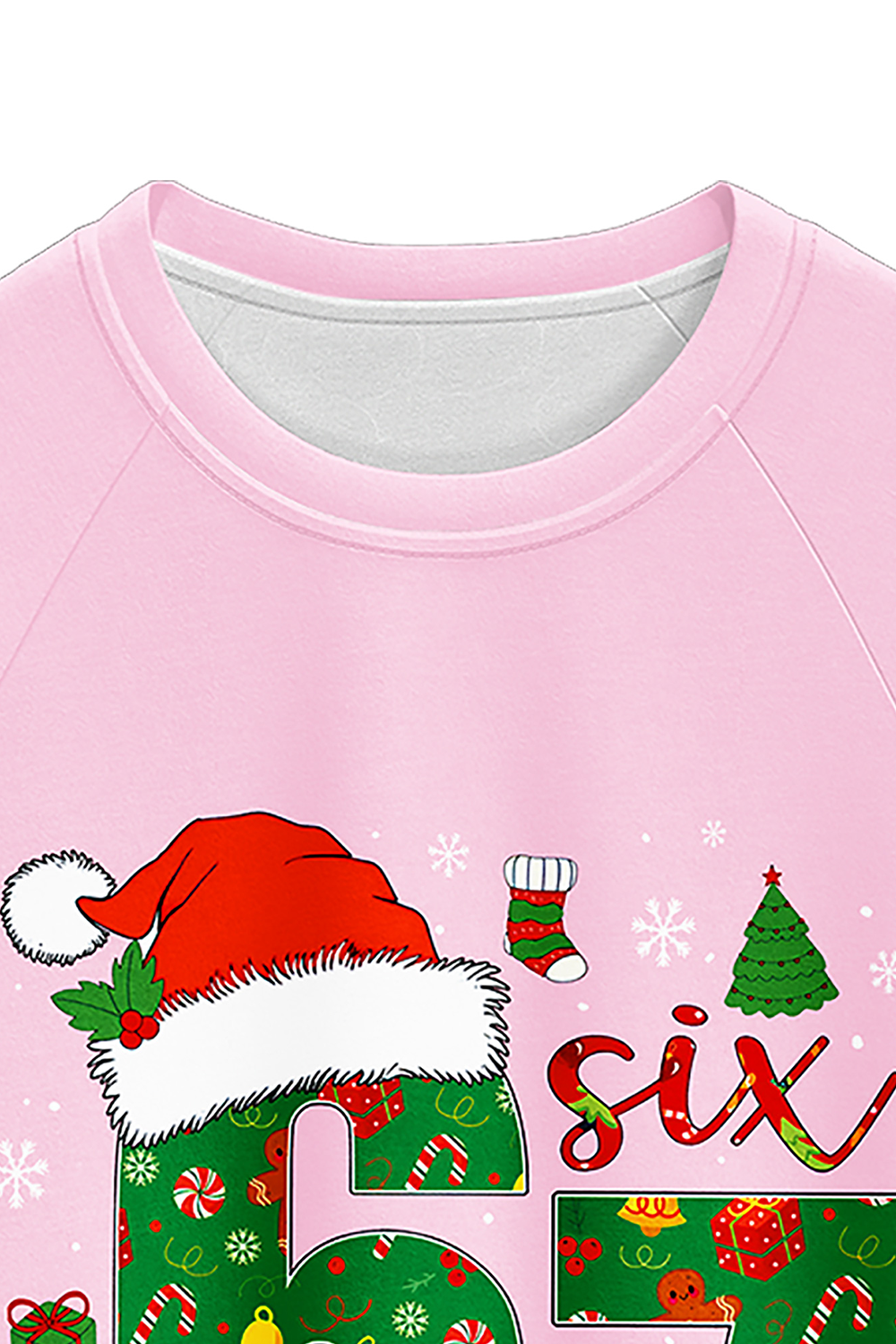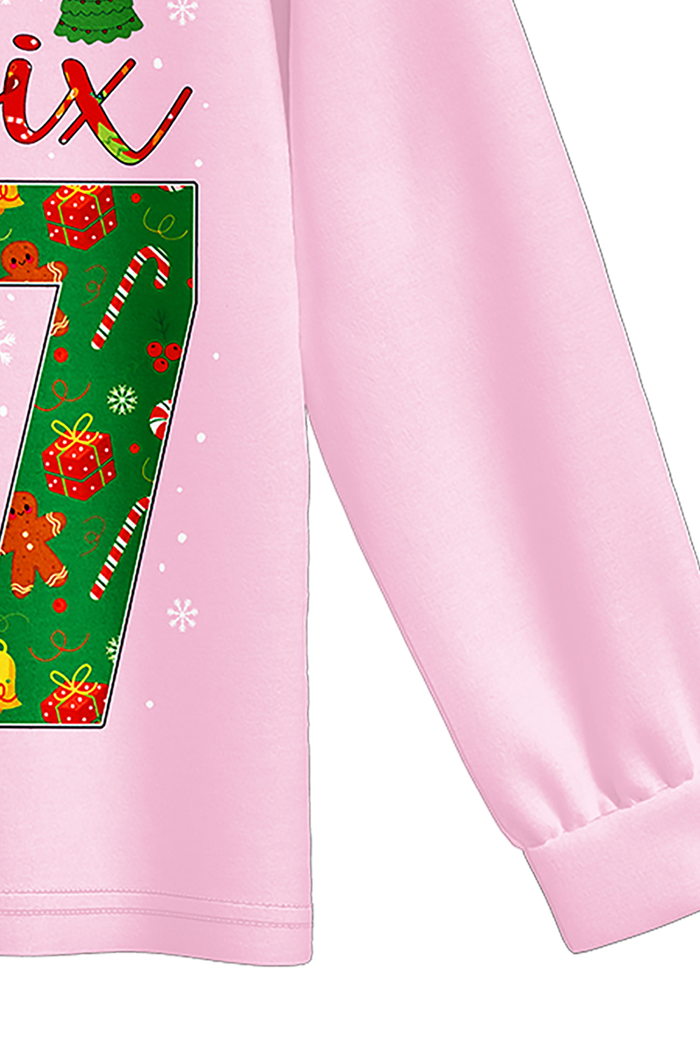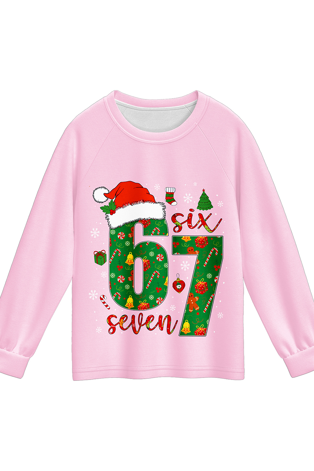 Made from super-soft fabric, this pink two-piece features playful "six" and "7" prints with a tiny Santa hat, plus festive patterns of trees and gifts. Perfect for cozy moments, holiday photos, and making magical memories! These unique SIX SEVEN pajamas make the ultimate holiday gift.