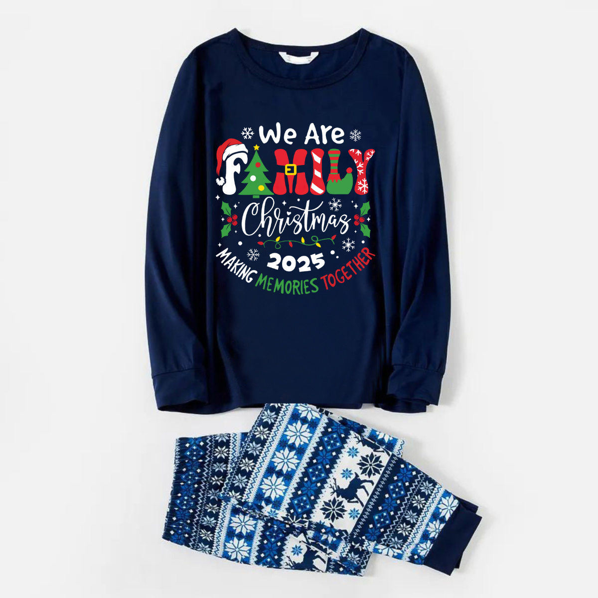 • "We are Family 2025 Christmas Make Memories Together" Slogan Print Blue Long Sleeve With Blue Floral Pants Family Matching Pajamas Sets